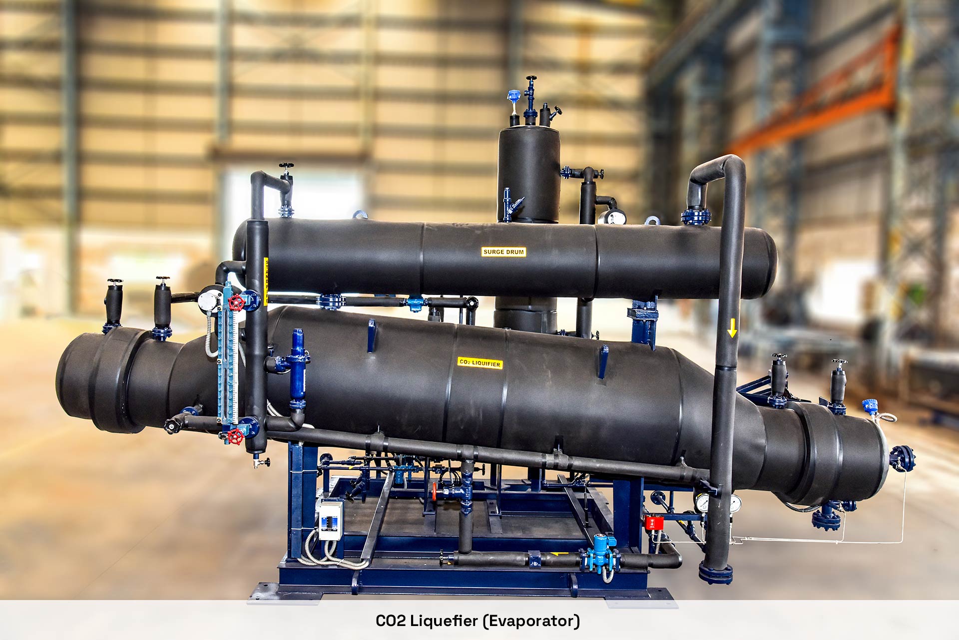 • Evaporator (Liquefier) shell & tube: Flooded, DX type With Highly efficient high heat transfer tubes in copper (for refrigerant other than Ammonia) for low refrigerant charge.